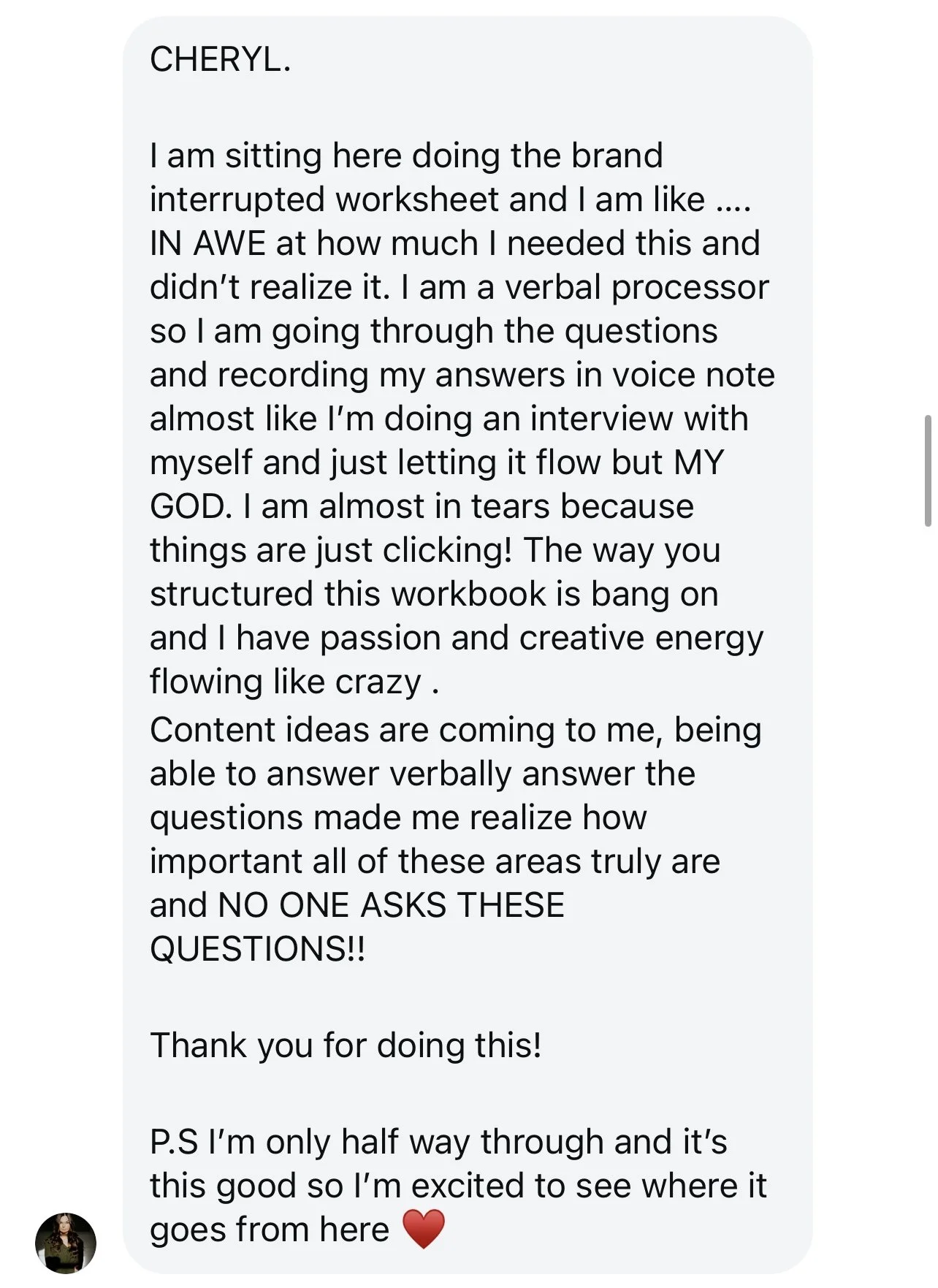 And then take some action steps to own your next steps. That’s the heart of Brand, Interrupted — a free workbook for founders in the foggy middle. It’s your guide for when you’re not sure what comes next, but you’re done feeling disconnected from your brand.
