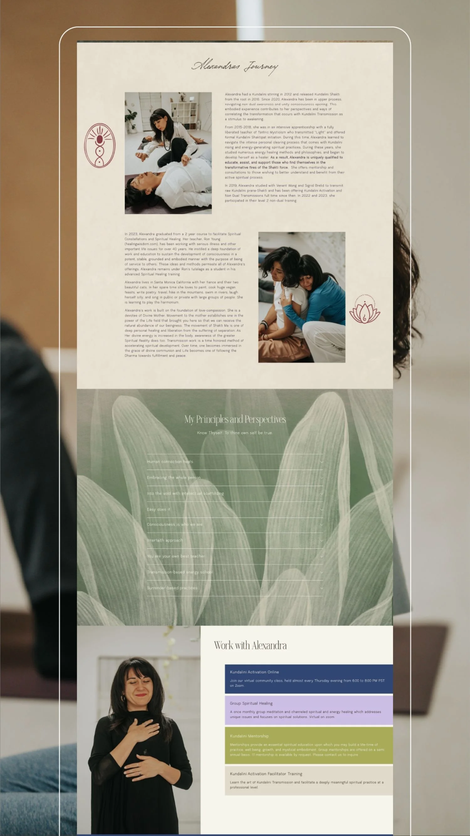 Although her business was thriving, Alexandra knew her brand and online presence weren’t reflecting the level of professionalism or heart behind her work. Her website was a quick DIY solution that served as a placeholder, but it lacked cohesion, clarity, and many of the features she needed to grow. She wanted her visual identity and online experience to finally match the quality and power of her services — something that felt authentic, compelling, and true to the love she pours into her practice.