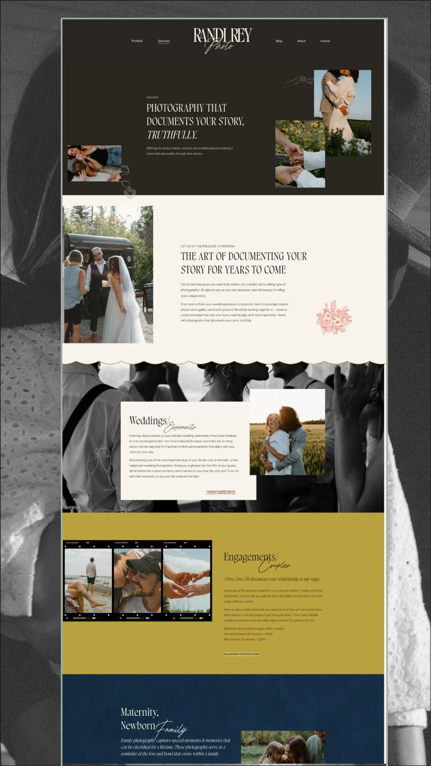 Randi reached out to us because she was ready to take her photography business full time, and get more bookings. After being in business for a year, she was struggling to be recognized for her unique style of imagery, and be a contender with more of the experienced photographers within Manitoba. She craved a brand identity that embodied her romantic, editorial, vintage style of photography, and needed a website that truly showcased her work. She wanted to ensure that she was known as a legitimate business, and a high-quality one at that.